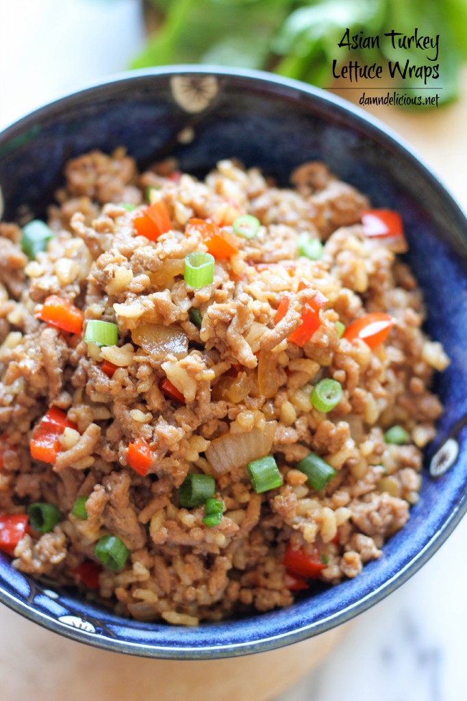To serve, spoon several tablespoons of the turkey mixture into the center of a lettuce leaf, taco-style.